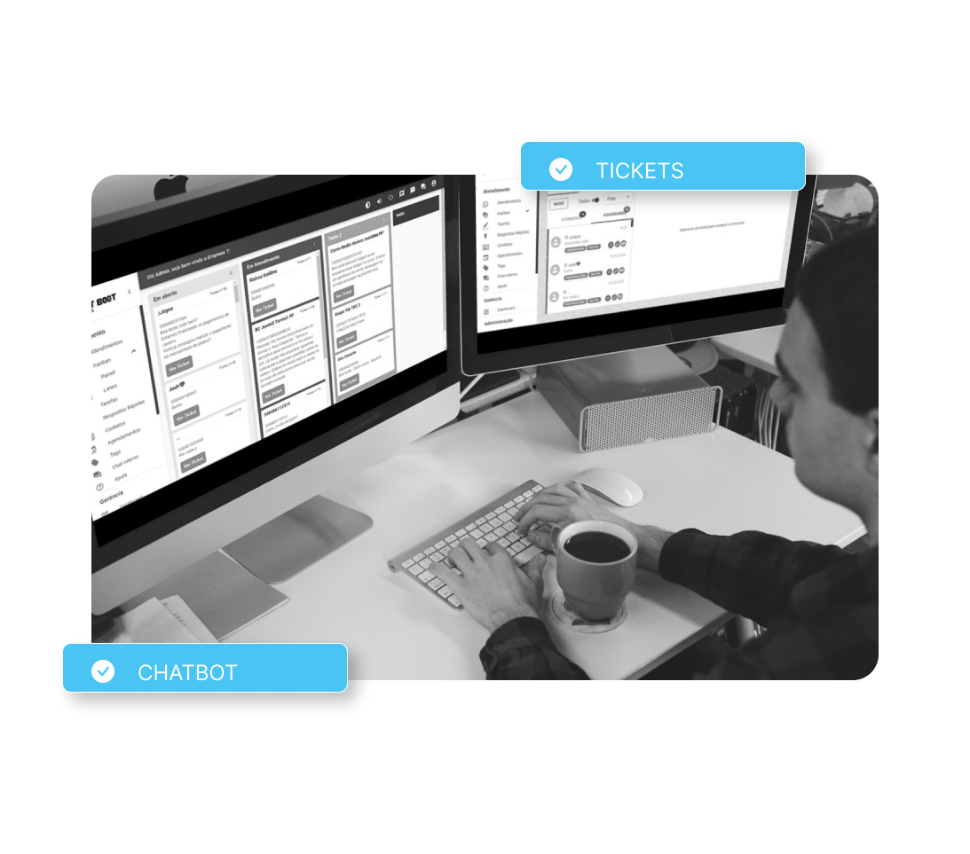 Organize e centralize todo os seus atendimentos em apenas um único número de WhatsApp. Os atendentes passam a usar nossa plataforma para enviar e receber mensagens de forma organizada e com a tecnologia de ChatBOT para automatizar o atendimento. Podendo se conectar de qualquer computador ou celular para fazer o atendimento e com Dashboard para acompanhamento total dos seus atendimentos de forma profissional.